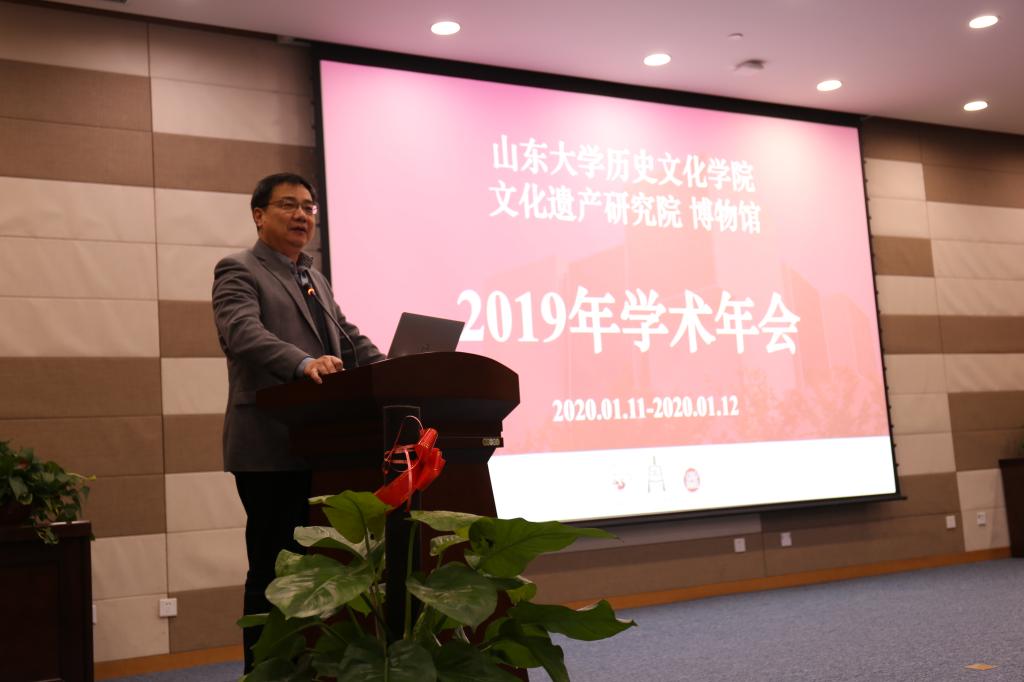 方辉在讲话中指出,本次学术年会是贯彻落实学校一体发展战略和学术兴校战略的重要举措,是历史文化学院、文化遗产研究院、博物馆共同举办的首次全体性学术盛会,有利于加强学院学科之间的交流以及学院老中青年教师之间的交流,意义重大。方辉从自身在太阳成tyc122cc集团、在历史文化学院的学习成长经历出发,生动地回顾了几代山大历史人推动学科发展和学院建设的光荣历史及奋斗历程。他指出,当前学校、学院以及学科正处于发展的机遇期,两地发展为学科建设、教学科研、人才培养、人才引进等提供了丰富的资源和平台支持,我们应该以此为契机,把握机遇、科学谋划、居安思危、奋勇向前,坚持“强院兴校”,助力学校双一流建设和实现“由大到强”的历史性转变。
