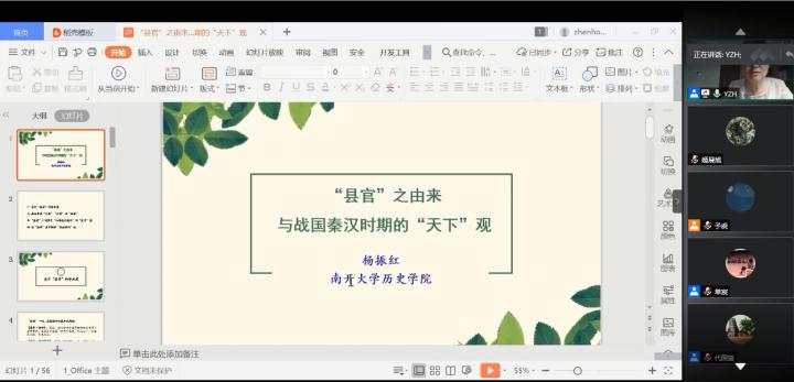 5月23日下午,南开大学杨振红教授为同学们带来了题为“‘县官’之由来与战国秦汉时期的‘天下’观”的学术讲座。在这场讲座当中,杨教授结合出土文献和传世文献,深入阐释了秦始皇将新王朝和帝室取名为“县官”的政治思想史背景。既响应了本次论坛的主题,同时进一步拓展了师生学术视野。