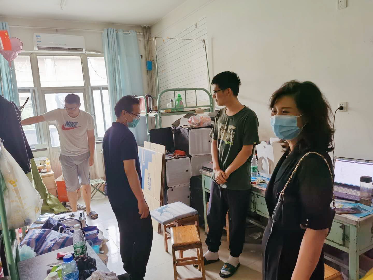 为贯彻落实学校疫情防控工作部署,做好毕业生毕业教育和离校各项工作,并传达学校和学院对毕业生同学的深情牵挂和美好祝愿,6月19日,历史文化学院党委书记刘军、副处级辅导员李一楠、毕业班辅导员寸凯宁一同前往2020届本科毕业生寝室,看望即将离校的同学们。