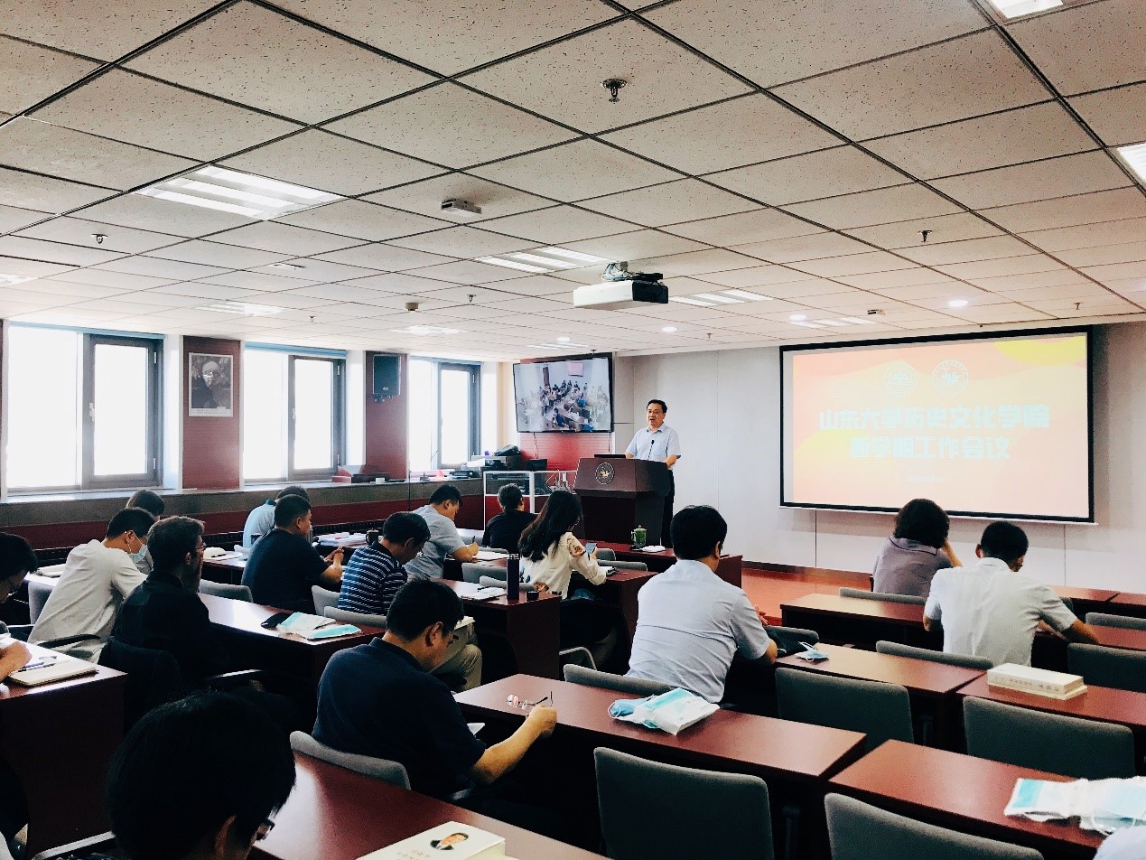 9月4日,历史文化学院、文化遗产研究院、博物馆(济南)、博物馆(青岛)召开2020年秋季学期工作会议,总结春季学期工作,安排部署秋季学期重点工作。院长方辉出席会议并讲话,党委书记刘军主持会议并作总结讲话。