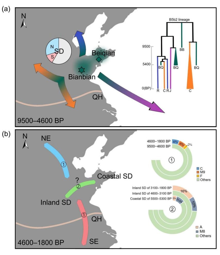 图. 距今9500到1800年前山东人群母系遗传历史