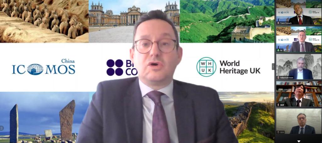 国家文物局副局长、中国古迹遗址保护协会理事长宋新潮先生在致辞中指出,中英两国都是世界遗产大国,有着不可推卸的保护管理世界遗产的责任,在世界遗产的保护和管理工作仍面临不小挑战的当下,中英两国的遗产工作者应当加强沟通与协作,相互学习,践行遗产工作者的使命。英国数字和文化部部长Caroline Dineage女士在致辞中指出,在新冠疫情的影响下,各方的联结和沟通变的无比重要,希望中英双方在过往基础上进一步开展合作,保护遗产,分享价值,按照可持续发展的理念,共同塑造美好未来。