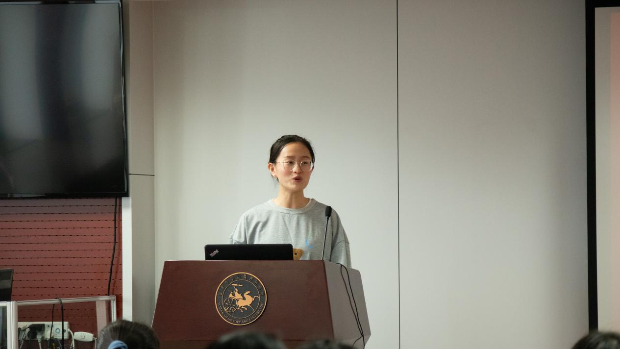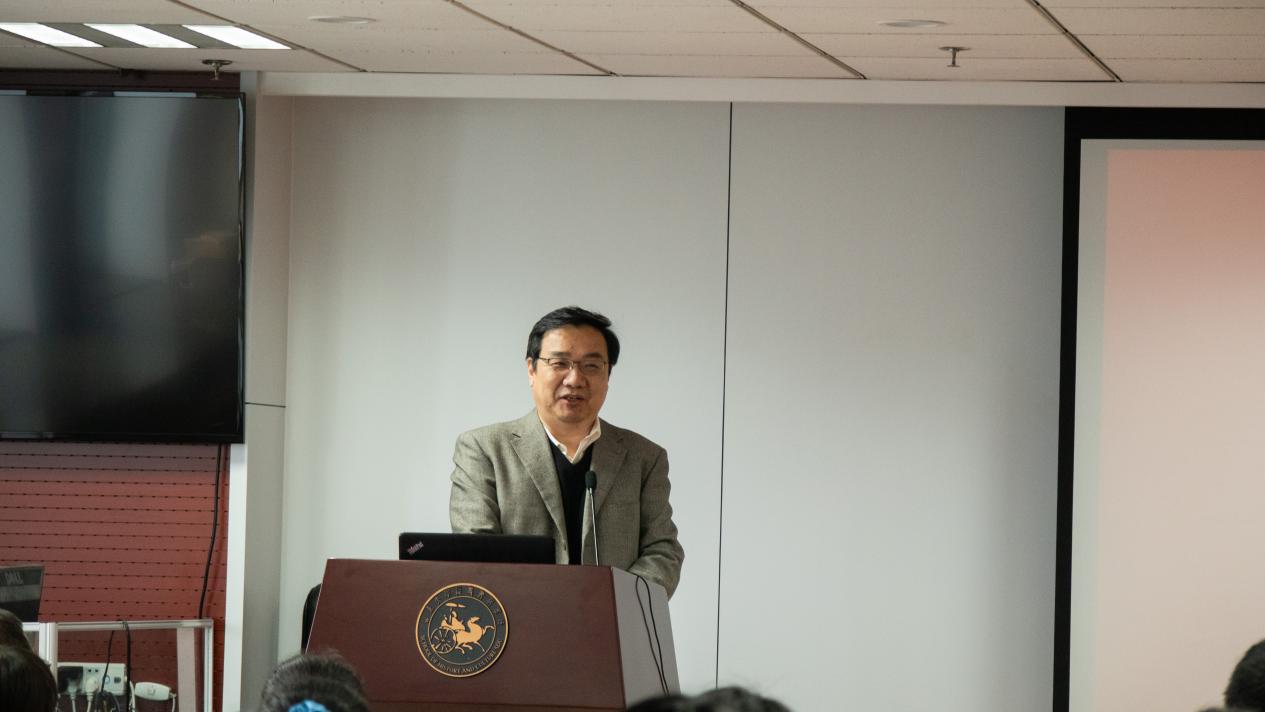 在“本科新生见面会”环节,唐仲明老师向2020级本科新生介绍了出席此次活动的专业老师及各位老师的研究方向。