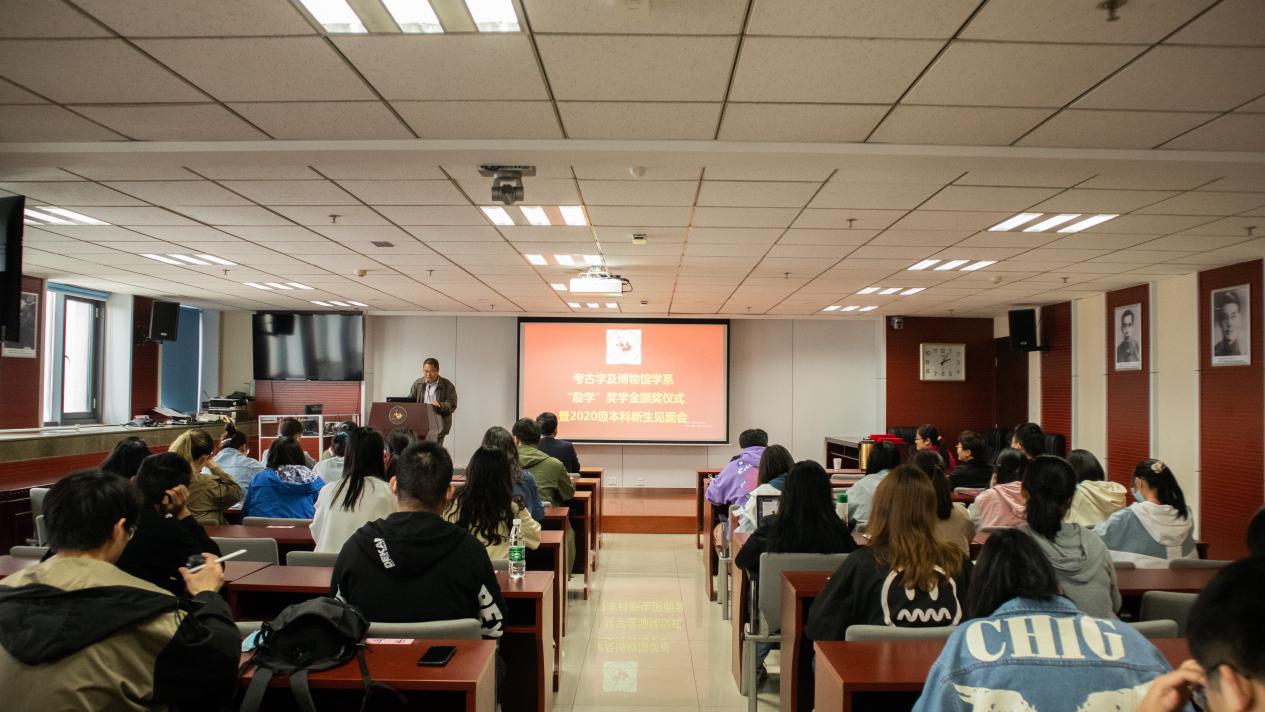 4月22日下午,历史文化学院考古学及博物馆学系“励学”奖学金颁奖仪式暨2020级考古专业学生见面会在知新楼A1017举行。历史文化学院院长方辉、考古系教授栾丰实出席活动并讲话,学院副院长王芬、考古学专业靳桂云教授等部分任课老师、2020级辅导员徐伯谦及2020级考古学专业全体本科新生参加活动。考古学及博物馆学系系主任兼2020级考古班班主任唐仲明主持此次活动。
