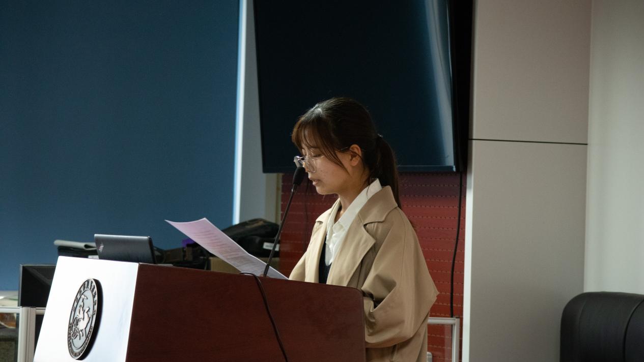 2020级孟紫阳作为新生代表发言,孟同学表示选择考古是她的梦想。作为刚刚接触考古的新生,只有不断耕耘才有收获,平时要多读书,用知识武装自己;培养良好的学习态度和自学能力,提升自我解决问题的能力;以坚定的信念学习考古。