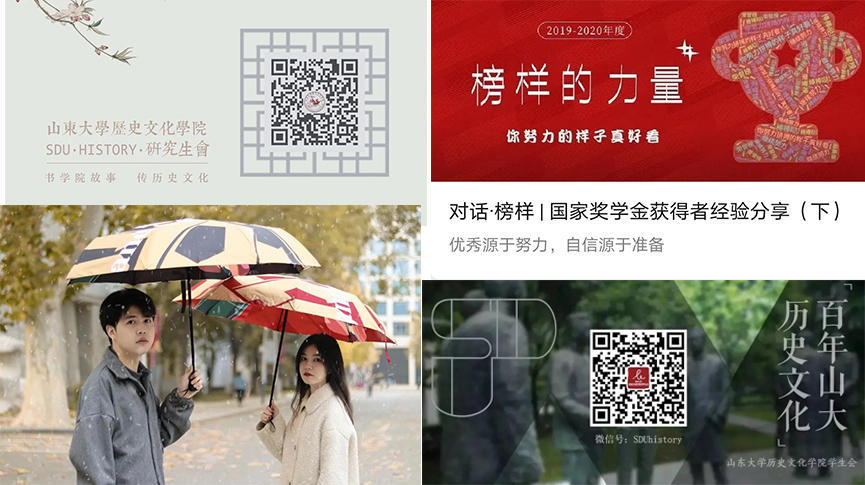 在新媒体和特色建设方面,院学生会公众号开辟“闪光的你”“对话·榜样”等模范宣传板块,以优秀促优秀;推出“百年百廿”专栏,打造党史、校史学习云平台。上一年度,学生会公众平台关注用户近4000人,推送消息300余条,总阅读次数超170000次,单日最高阅读次数近4000次,所有数据均创历史新高。院研究生会公众号“SDU·HISTORY·研究生会”把握各专业的共性与特点,兼顾学生需求和发展方向,优化微信推送的板块结构,形成了由“闻道”“百家”“新书推介”“期刊资讯”等组成的服务学术的板块和由“招聘”“帮推”“全心权益”“节气”等组成的服务学生的形式,并且在推送中积极进行原创选题制作。自2020年7月至今,共计推文425篇,总阅读量超过150000次。此外,院研究生会结合专业特色,建立学院文创周边设计体系,目前已设计并生产出帆布包、渔夫帽、马克杯、围巾、“历史文化”厚款绷带笔记本、学院猫笔记本、学院猫钥匙扣、学院猫晴雨伞等文创产品,受到学院老师和同学们的一致好评,并得到《大众日报》专题报道。