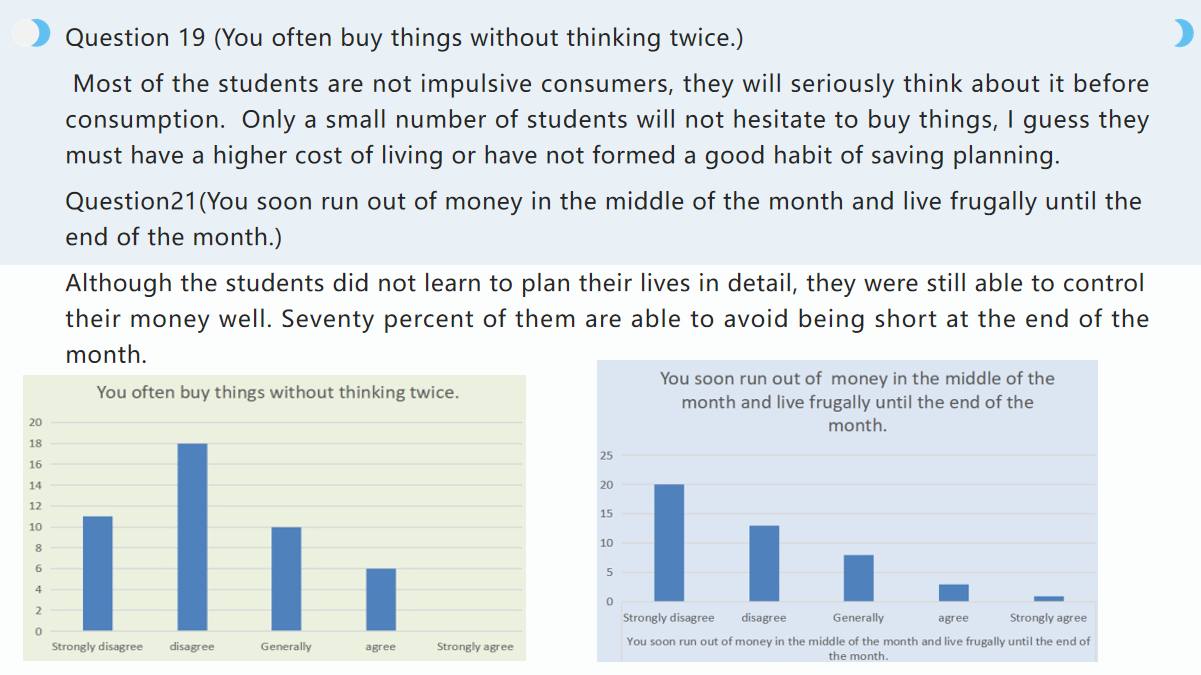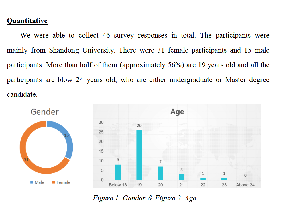 Keri Schwab教授将同学们随机分为八个小组,各小组自选题目进行社会调查,在最后一节课每小组需使用powerpoint进行成果展示并上交一份分析总结报告。同学们面向多个社会现象比如消费、老龄化等诸多实际问题进行调查,成果展示丰富多彩。