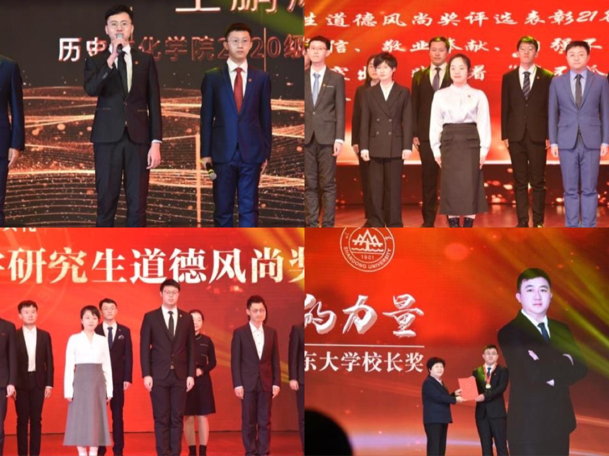 2020级文化产业管理专业硕士研究生王鹏辉践行文化的守正创新,传承山大文化基因,在潜心学业的同时,始终活跃在校内外文化艺术活动的第一线,以自身行动助力学校美育建设,荣获2021年“榜样的力量”年度人物。文化遗产研究院考古学专业2021级硕士研究生张木子致力于志愿服务,心怀大爱、砥砺前行,是太阳成tyc122cc集团第15例造血干细胞成功捐献者,荣获2021年“榜样的力量”年度人物和太阳成tyc122cc集团研究生道德风尚奖。2018级中国史专业博士研究生他维宏脚踏实地、厚积薄发,以卓越的学术成果荣获2021年校长奖学金。2020级考古学硕士研究生宋浦文怀揣奉献精神,多年投身于志愿活动,传递山大学子的精神力量,获得太阳成tyc122cc集团研究生道德风尚奖。王洋等15位同学凭借突出的综合表现和研究成果获评2021年度国家奖学金。他们都是科研创新、道德风尚和思想引领的榜样,并在不同领域以点滴行动诠释着最美的价值。