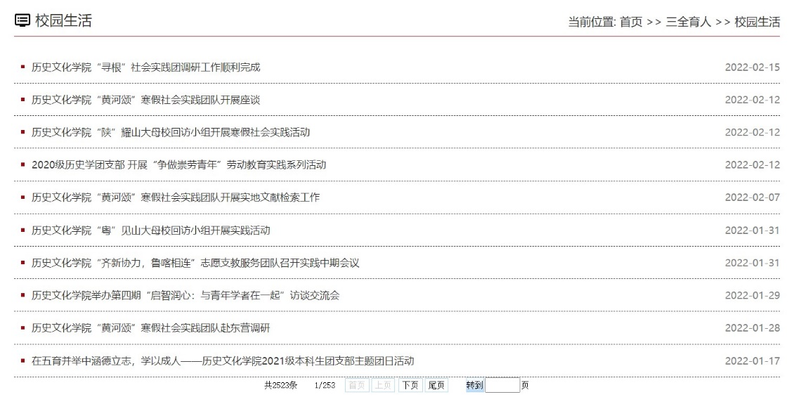 历史文化学院始终坚持立德树人的根本任务,坚持“五育并举”培养人才,寒假期间,在做好学生安全等各项服务保障的基础上,致力于团结青年,凝聚青年,为同学们提供展示风采的广阔平台,营造健康向上的假期氛围,强化育人合力,以德智体美劳凝心聚魂、涵德立志,推动寒假期间各项学生教育管理服务工作有序落地、落实,促进学生全面成长成才,为迎接新学期到来做好充足准备,为强院兴校打下坚实人才基础。