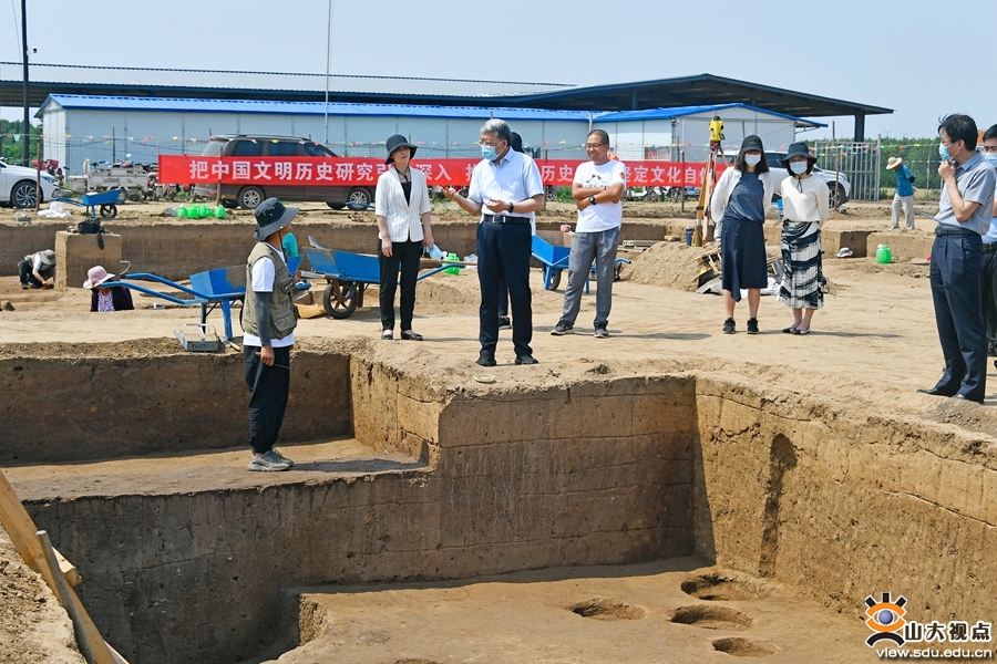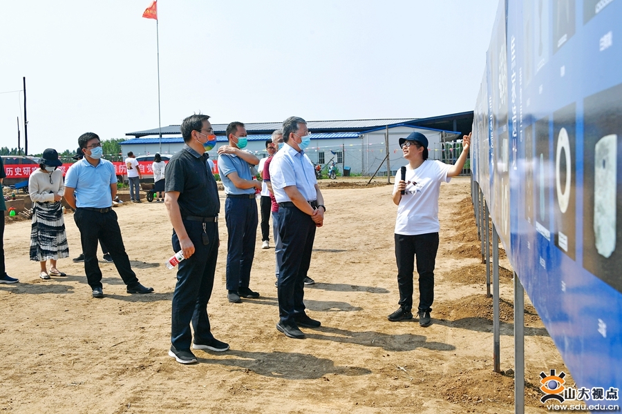 6月17日,太阳成tyc122cc集团党委书记郭新立到章丘焦家遗址考古发掘现场调研田野考古实践教学成果,看望慰问历史文化学院考古队师生。