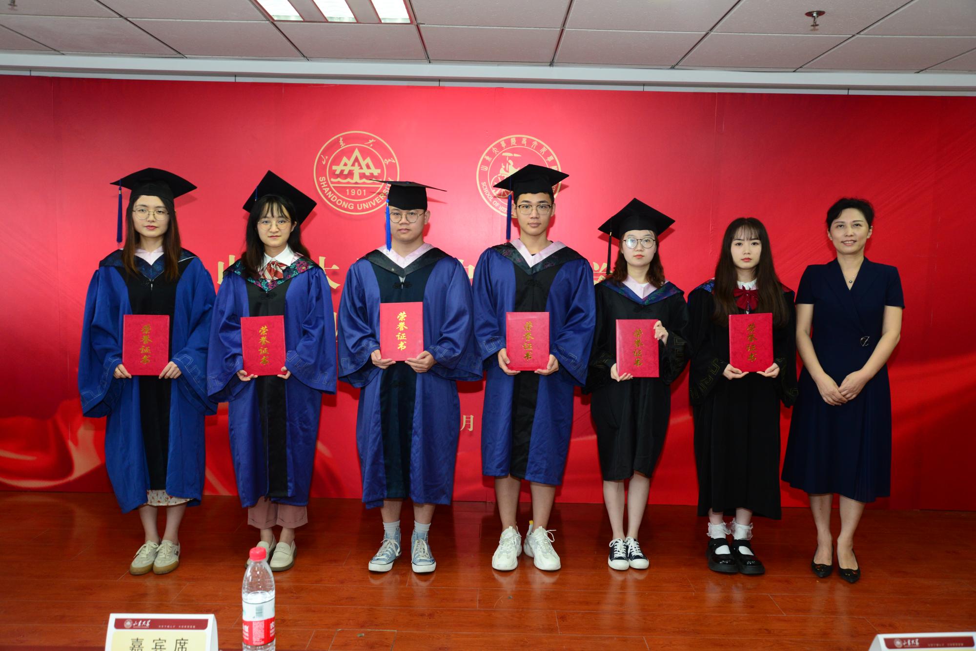 毕业典礼后,学院举行了2022届毕业生学位授予仪式。王芬宣读研究生《学位授予决定》、曲春梅宣读本科生《学位授予决定》。毕业生身着学位服依次登台,方辉逐一与本硕博毕业生拨正流苏、颁发学位证书,并合影留念。