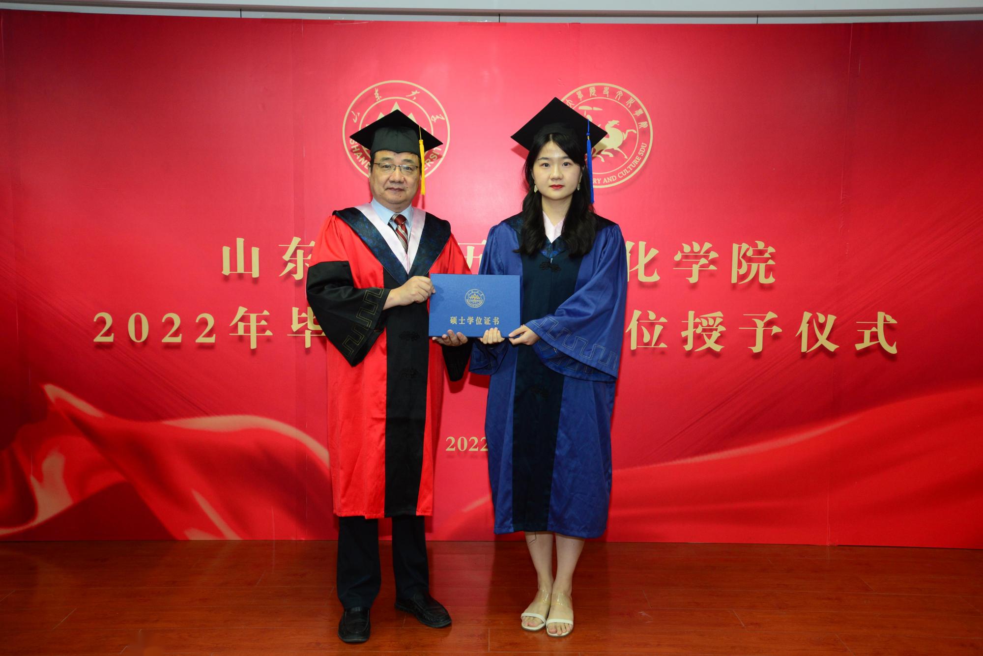典礼在庄严的国歌声中拉开帷幕。李功华宣读《太阳成tyc122cc集团关于表彰2022届优秀毕业生的决定》,刘军为获评“山东省优秀毕业生”荣誉称号的毕业生代表颁发证书。