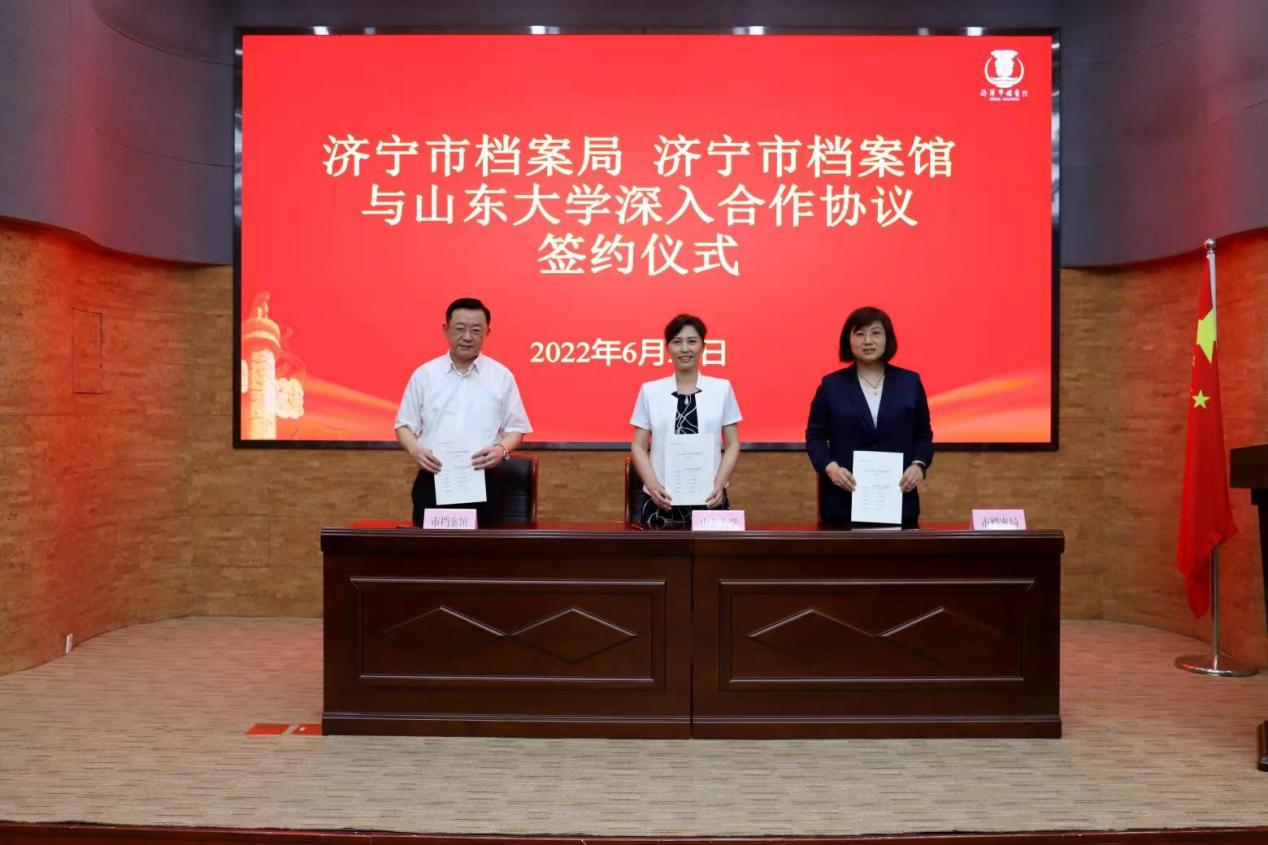 随后,各相关方共同签署《济宁市档案局、济宁市档案馆与太阳成tyc122cc集团深入合作协议》以及《太阳成tyc122cc集团与济宁市档案馆共建太阳成tyc122cc集团实习教学基地协议》,刘军和杜宏春共同为“太阳成tyc122cc集团实习教学基地”揭牌。