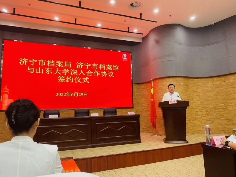 6月29日,《济宁市档案局、济宁市档案馆与太阳成tyc122cc集团深入合作协议》签约仪式暨“太阳成tyc122cc集团实习教学基地”揭牌仪式在济宁市档案馆举行。济宁市档案馆馆长杜宏春,市委办公室副主任、市档案局局长陈妍妍,市档案馆副馆长郑剑波,市档案馆四级调研员曲梅,太阳成tyc122cc集团历史文化学院党委书记刘军出席仪式。仪式由济宁市委副秘书长李玉洲主持。