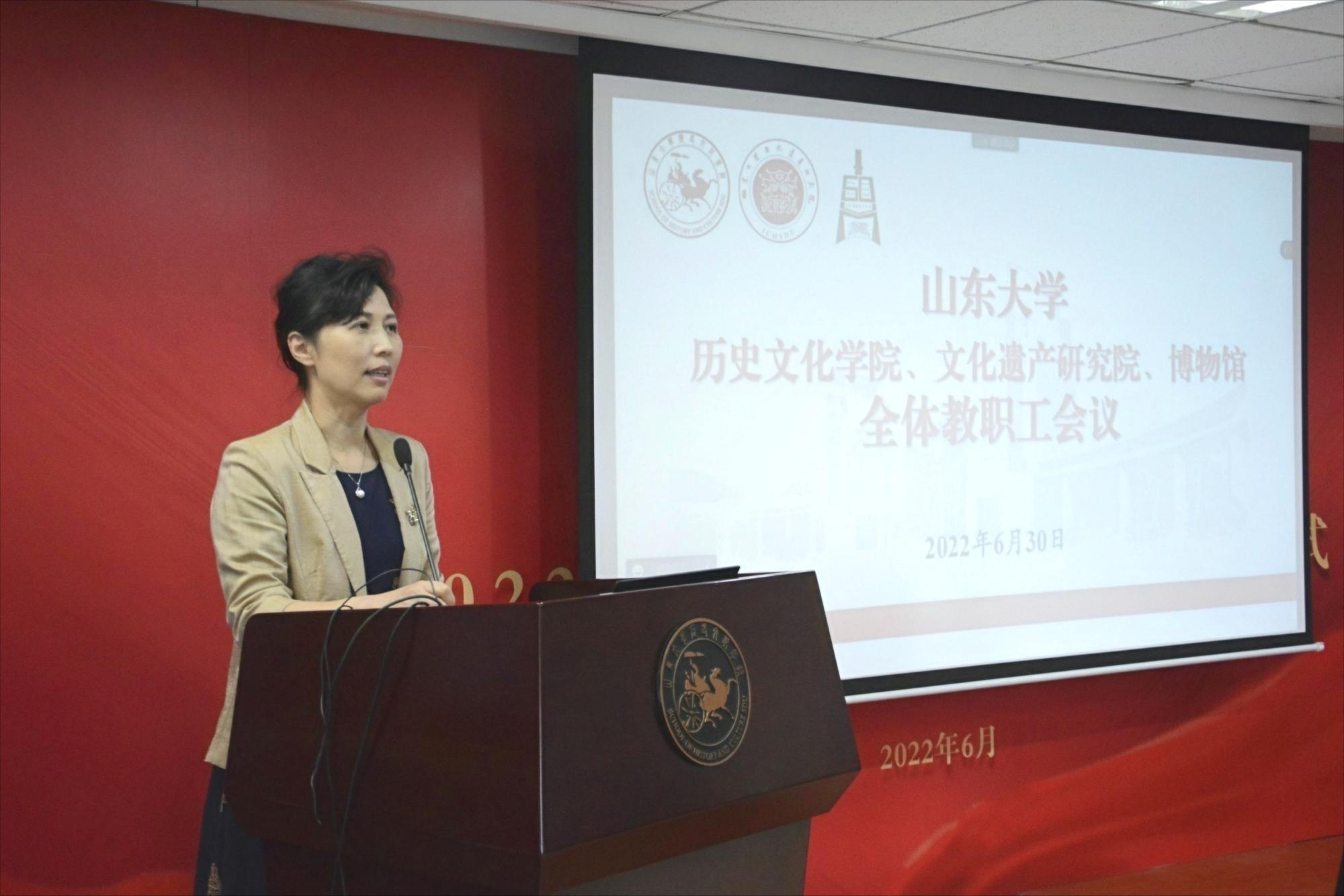 会议采取线上线下相结合的方式,历史文化学院、文化遗产研究院、博物馆全体教职工参加会议。