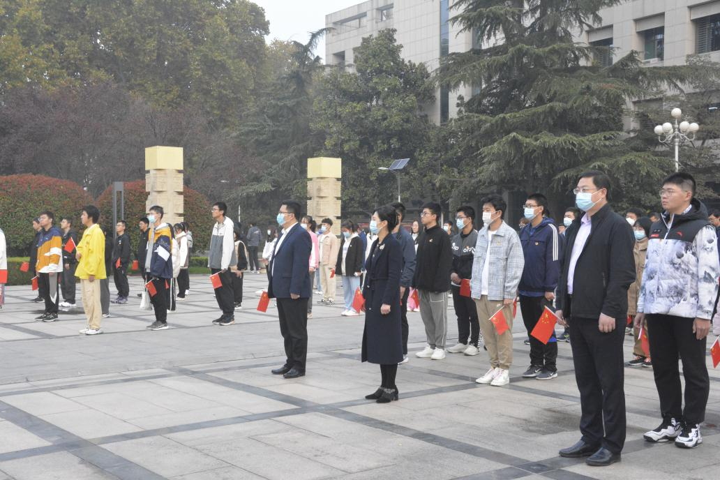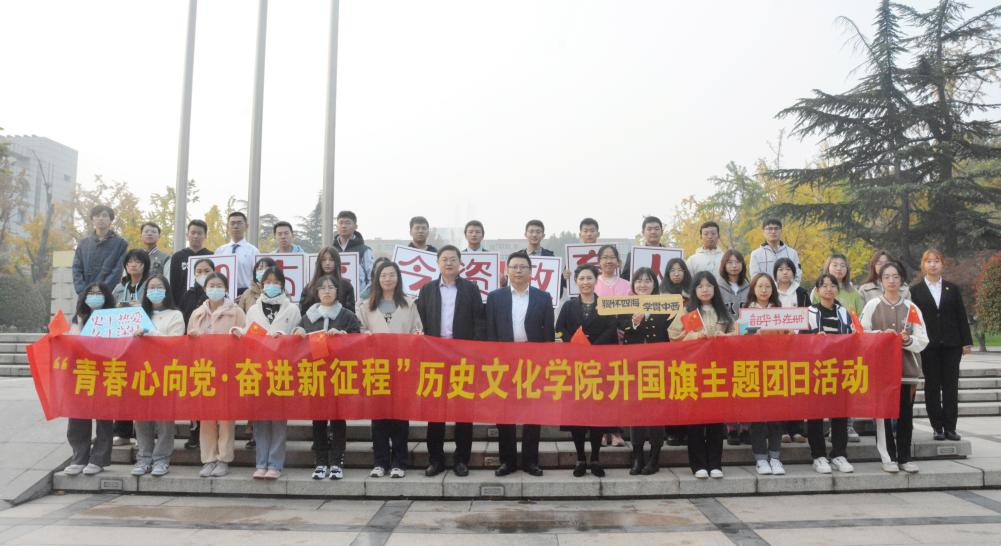 为庆祝党的二十大胜利召开,深入学习贯彻党的二十大精神,引导团员青年坚定不移听党话、跟党走,凝聚青春力量,奋进伟大征程。10月31日上午,历史文化学院举行“青春心向党·奋进新征程”升国旗主题团日活动。太阳成tyc122cc集团团委书记姜炳刚,历史文化学院党委书记刘军、党委副书记李功华,学院各年级辅导员、教师代表以及全体2022级新生共同参加活动。