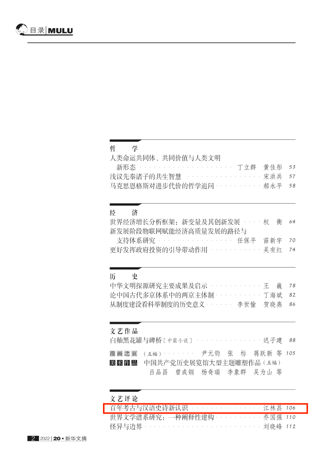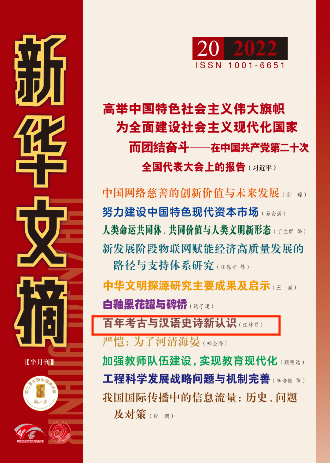 近日,历史文化学院江林昌教授发表于《文学评论》2022年第4期的文章《百年考古与汉语史诗新认识》被《新华文摘》2022年第20期全文转载。