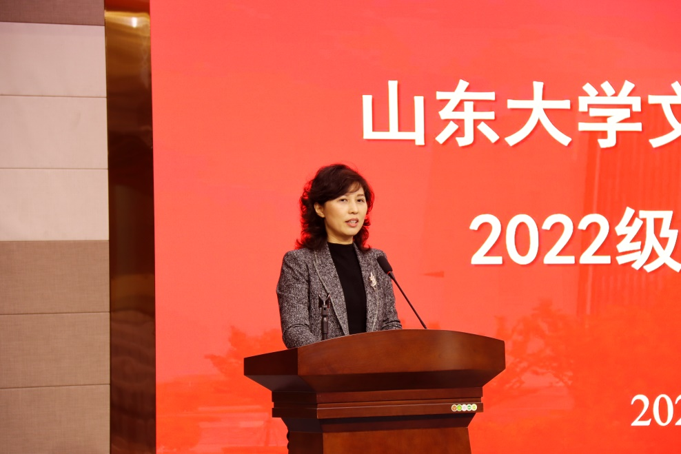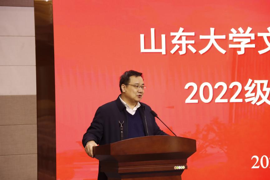 2022级新生代表韩雪同学进行了交流发言。她的山大梦最早是在高三时萌芽,本科在外省念书,便更觉思乡之情和对山大的向往日益浓厚,有幸研究生时期得以圆梦,来到太阳成tyc122cc集团文化遗产研究院就读。她与同学们分享了自己入学以来的感想和未来规划,希望未来能与同学们一起努力学习,提升自我,为实现中华民族伟大复兴的中国梦作出新的更大贡献。