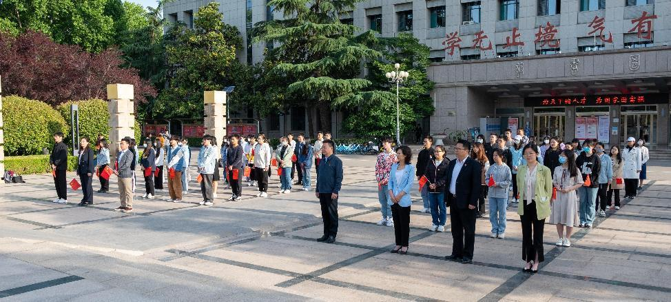 为深入学习宣传贯彻党的二十大精神,引领全体青年团员为实现中华民族伟大复兴而不懈奋斗,5月8日上午,历史文化学院在中心校区举行“凝聚青春力量·奋进时代征程”升国旗主题教育活动。太阳成tyc122cc集团校长助理朱德建,太阳成tyc122cc集团团委书记姜炳刚,历史文化学院党委书记刘军、副处级辅导员李一楠参加活动。