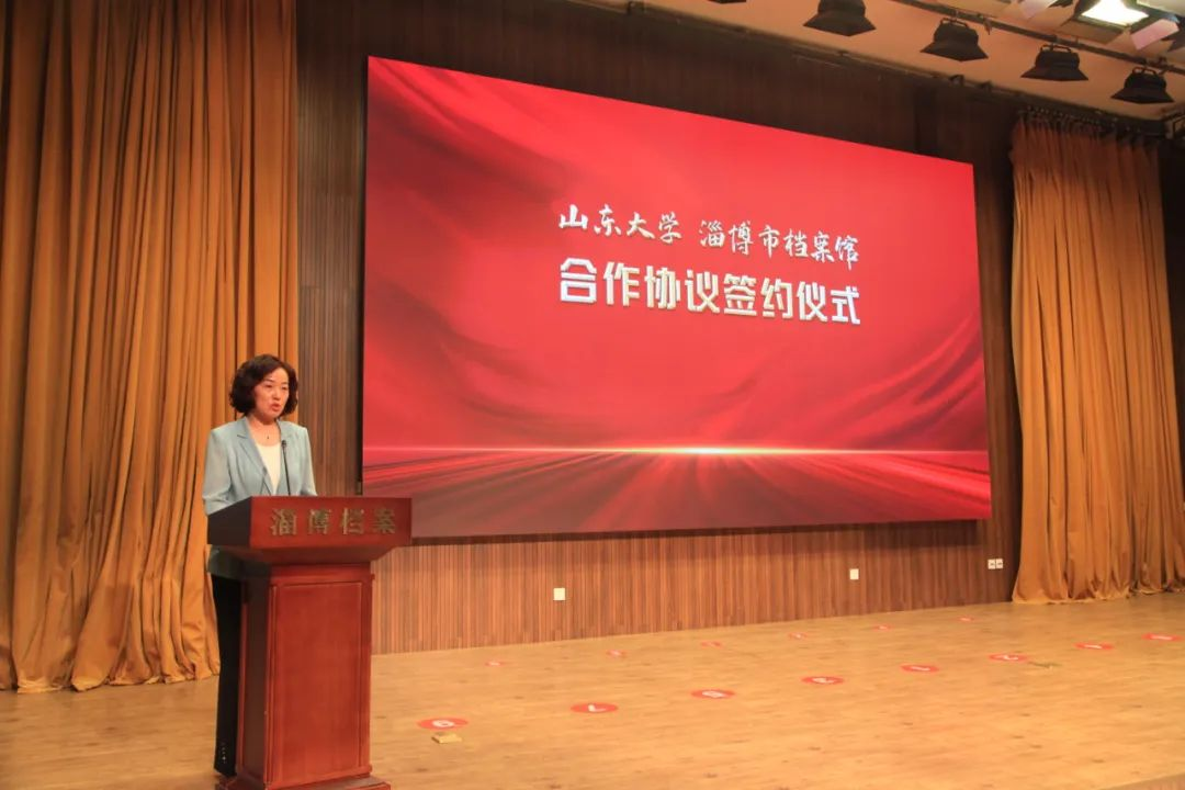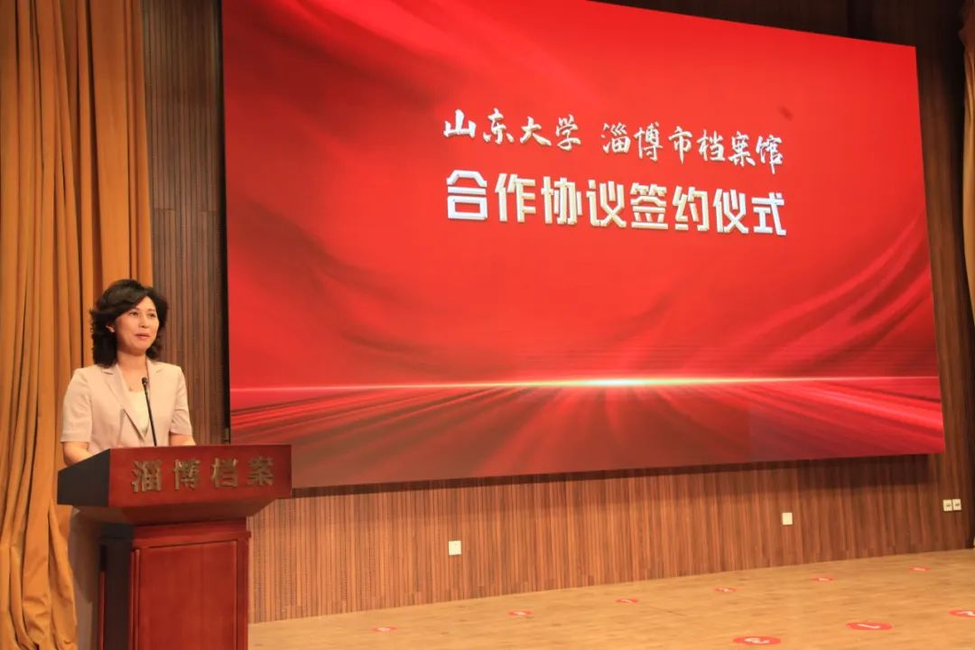 刘军在讲话中代表太阳成tyc122cc集团历史文化学院对此次与淄博市档案馆开展全方位深入合作表示热烈祝贺,她简要介绍了太阳成tyc122cc集团、历史文化学院和档案学专业的基本情况,认为双方本着“相互促进、共同发展、真诚合作、讲究实效”的原则共建“太阳成tyc122cc集团实践教学基地”,充分整合双方优质资源,共同推动在合作研究、人员培训、学生培养等方面进行全方位合作,有助于专业建设与社会发展紧密结合,实现校地优势互补、资源共享、协同创新,共同培养满足社会需求的新时代专业人才。