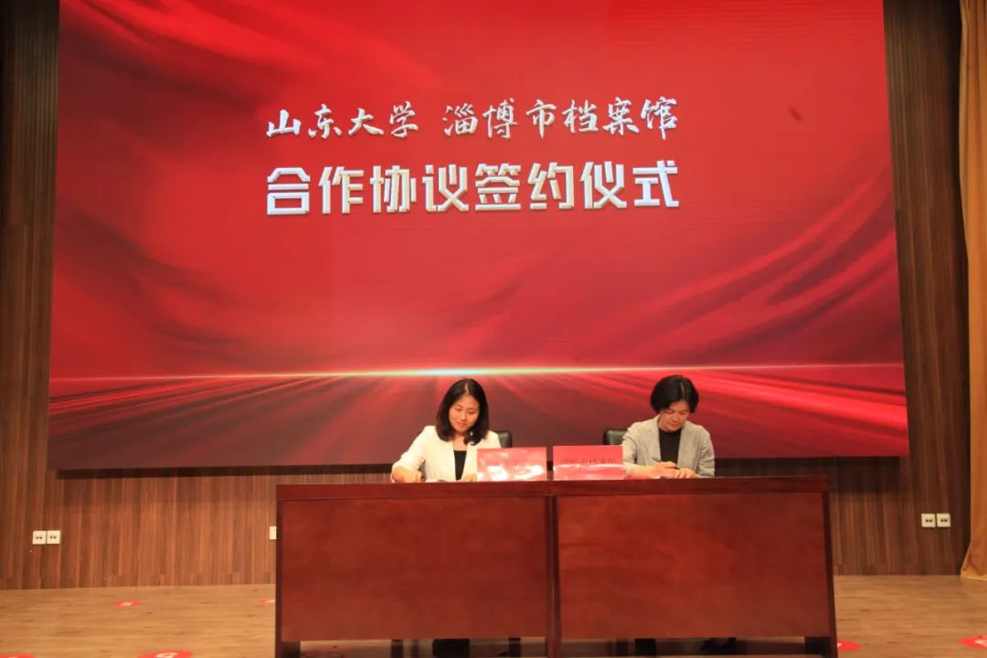 随后,曲春梅与李洁共同签订“淄博市档案馆与太阳成tyc122cc集团深入合作协议”,刘军和张苗共同为“太阳成tyc122cc集团实践教学基地”揭牌。