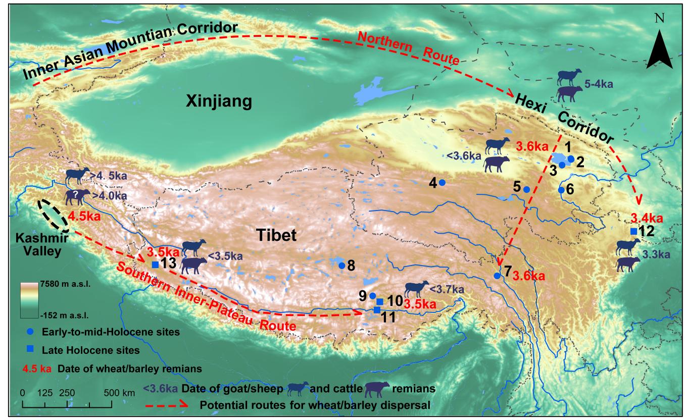 农业与畜牧业的引进使得青藏高原在全新世中期迎来了人口大规模拓殖。过去的研究多集中于高原东北部毗邻的甘、青低海拔地区农业人群向高原的拓殖过程。本项研究强调了在文化接触与经济转变过程中高原本土狩猎采集人群以及狩猎采集经济的韧性(resilience)。同时,结合来自青藏高原西部格布赛鲁遗址和喀什米尔河谷的考古证据,作者构建了以阿里地区河谷地带为枢纽,沟通南亚西北部与高原中部的东西向“高原内陆南路线 (Southern Inner-Plateau Route)”。动、植物考古学证据表明,青藏高原西部的牛、羊以及麦类作物可能藉由该通道从印巴次大陆西北部传入,部分驯化物种沿着雅鲁藏布江河谷继续向东传播至青藏高原中部。格布赛鲁早期墓葬遗存与同时期拉萨曲贡遗址一些相似的文化因素,进一步反映了该通道对于青藏高原西部与中部文化交流的促进作用。