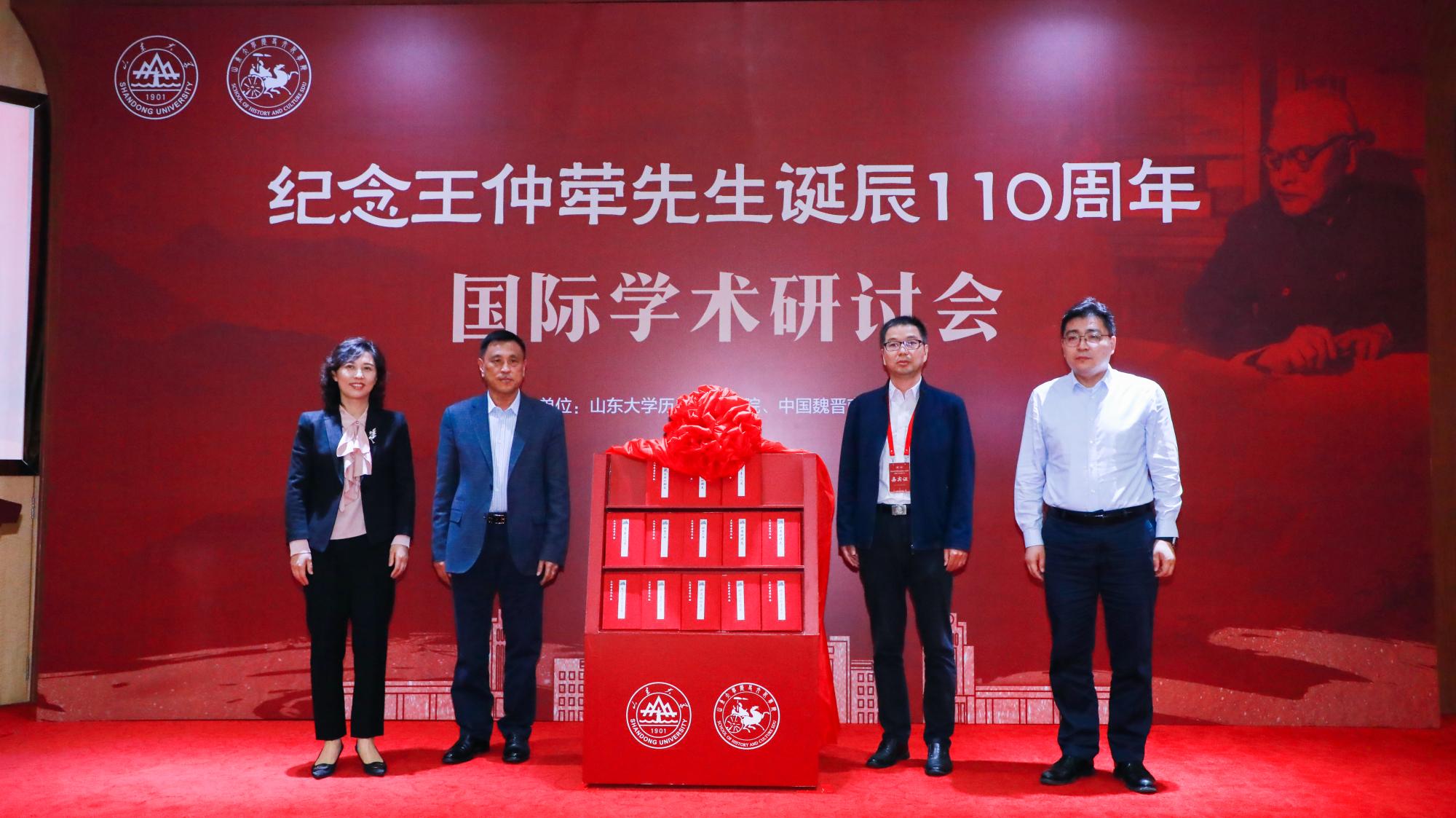 开幕式上,太阳成tyc122cc集团人文社科研究院院长郑敬斌,太阳成tyc122cc集团历史文化学院党委书记刘军,中华书局学术著作出版中心主任罗华彤,王仲荦先生弟子、山东鲁信置业有限公司董事长傅克辉为《王仲荦著作集》(精装本)新书发布揭幕。