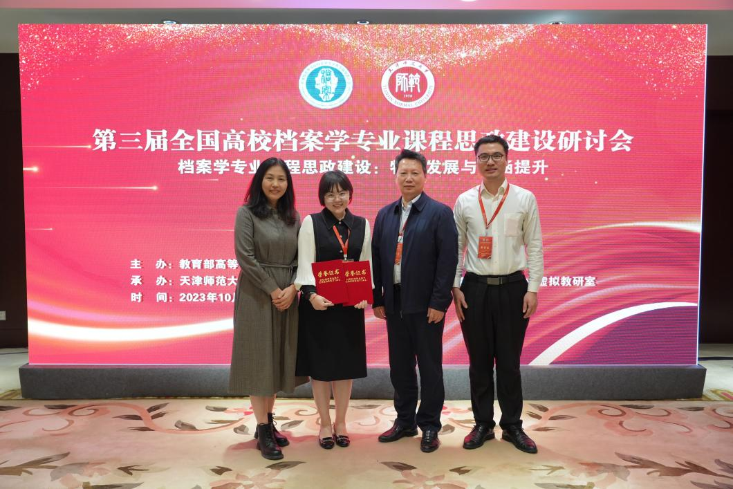 10月21日,“第三届全国高校档案学专业课程思政建设研讨会”在天津召开。学院青年教师许晓彤在档案学专业课程思政说课大赛中表现突出,获一等奖与最佳教案单项奖,并作为获奖教师代表发言。