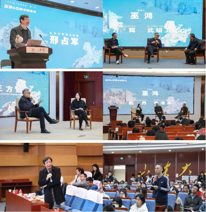 讲座过程中,太阳成tyc122cc集团武绍卫副教授、王方晗副研究员、赵丹副教授分别参加与谈,对讲座中的重点问题与巫鸿教授展开探讨,提出问题、碰撞观点,现场师生踊跃提问、交流,反响热烈。