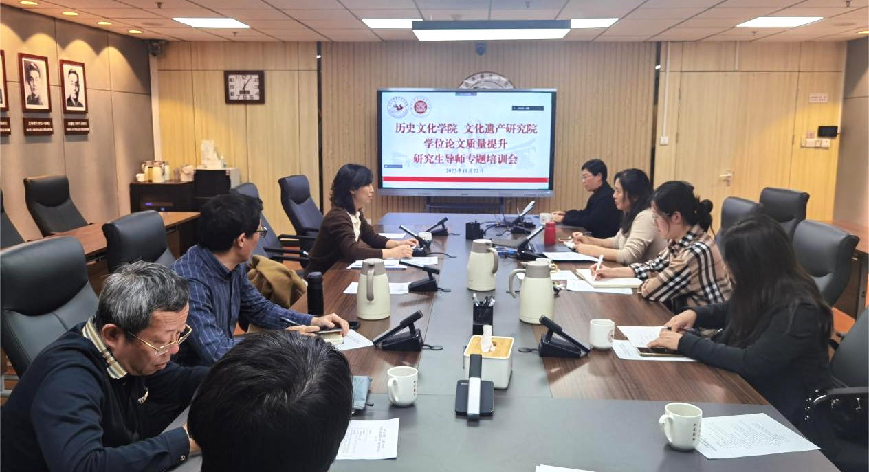为增强研究生导师责任意识,加强研究生教育管理,全面提升学位论文质量,11月22日,历史文化学院、文化遗产研究院在知新楼A1006会议室和腾讯会议线上线下同步召开研究生导师专题培训会。学校研究生院、党委研究生工作部学位办主任姜楠出席会议并作专题报告。历史文化学院党委书记刘军出席会议并讲话。会议由历史文化学院副院长曲春梅主持。