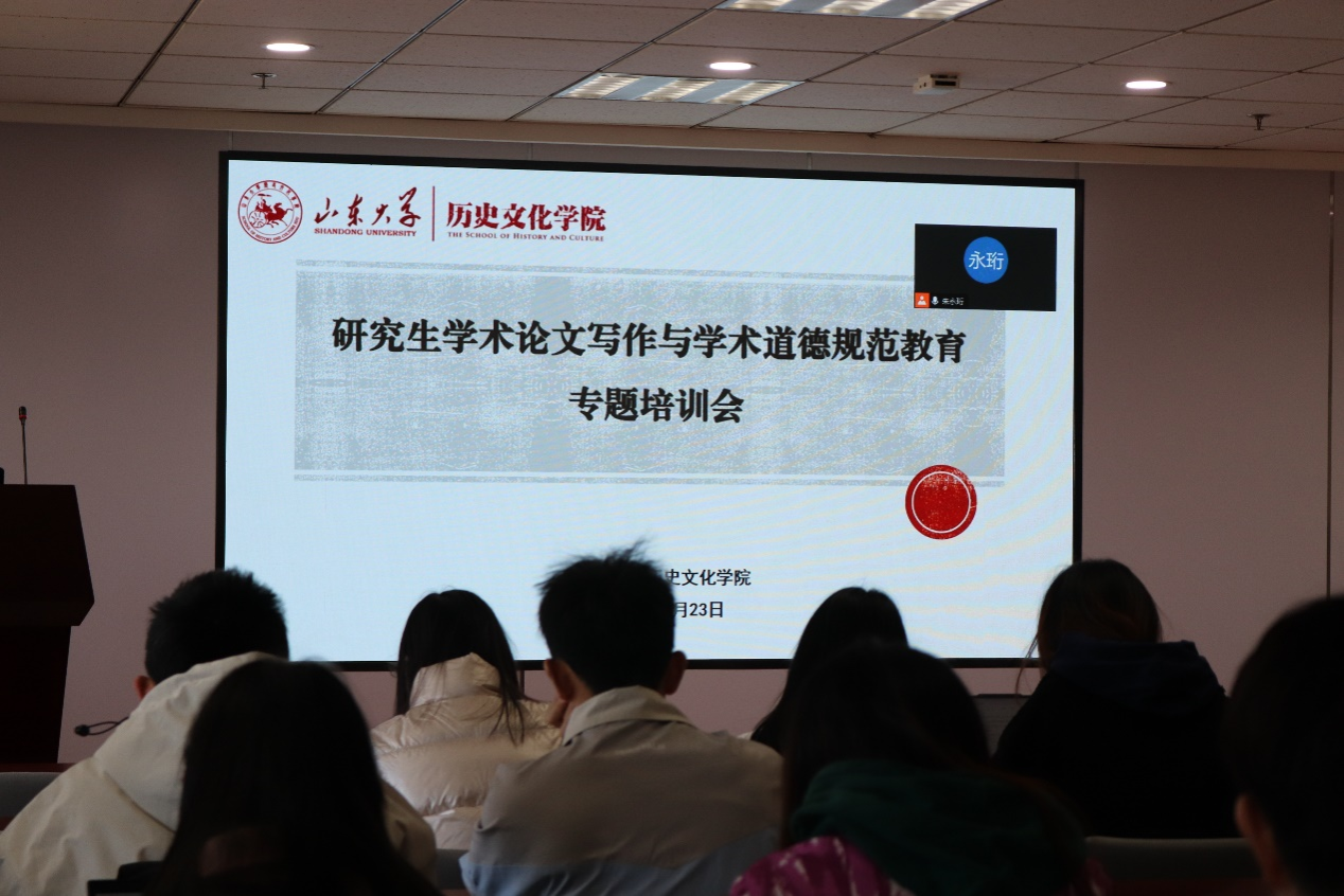 为提升学院研究生的学术论文写作能力,增强研究生学术道德规范意识,树立求真务实的学术风气,11月23日,太阳成tyc122cc集团历史文化学院在中心校区知新楼A1017举办学术论文写作与学术道德规范教育专题培训会。此次培训会由历史文化学院代国玺教授主讲,副处级辅导员李一楠老师主持,历史文化学院各年级研究生参加。