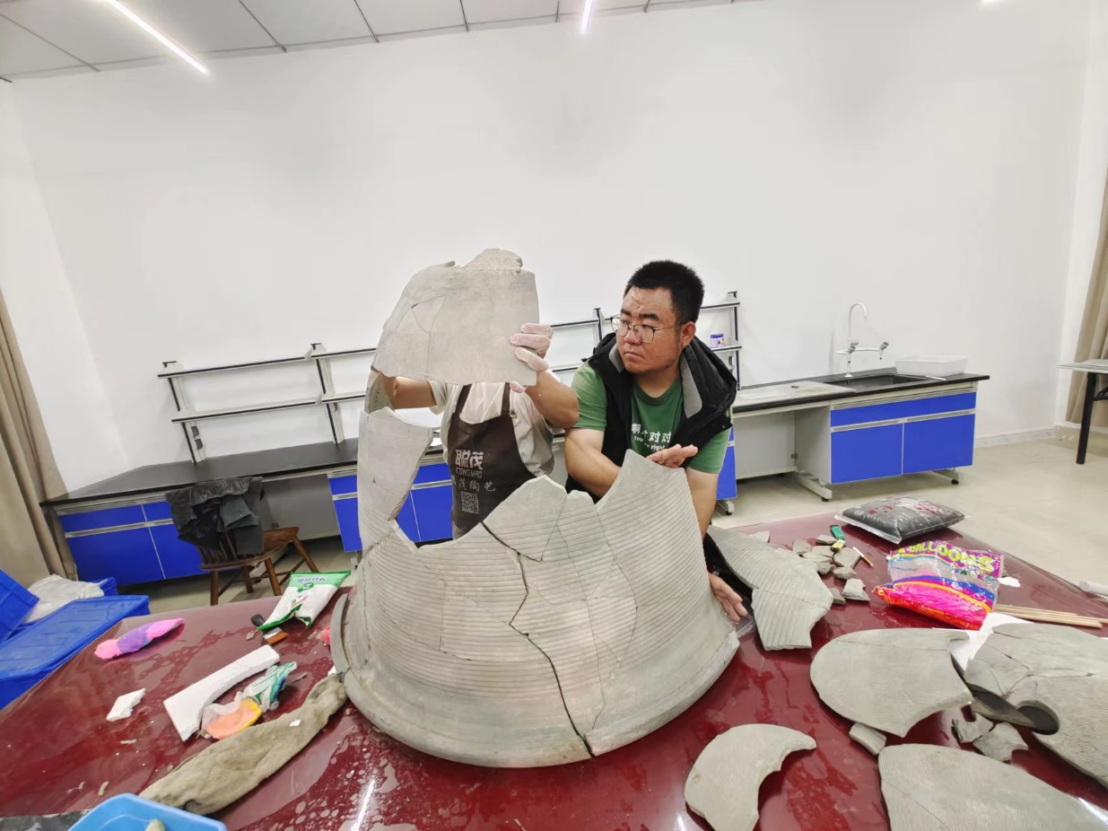 二是设立文物保护实验室。国家文物局多年来一直重视考古发掘现场的文物保护,此次在遗址发掘现场数百米外的实习基地内设立文物保护实验室,为文物保护专业教学、科研深入田野考古发掘一线,提供了良好范本。