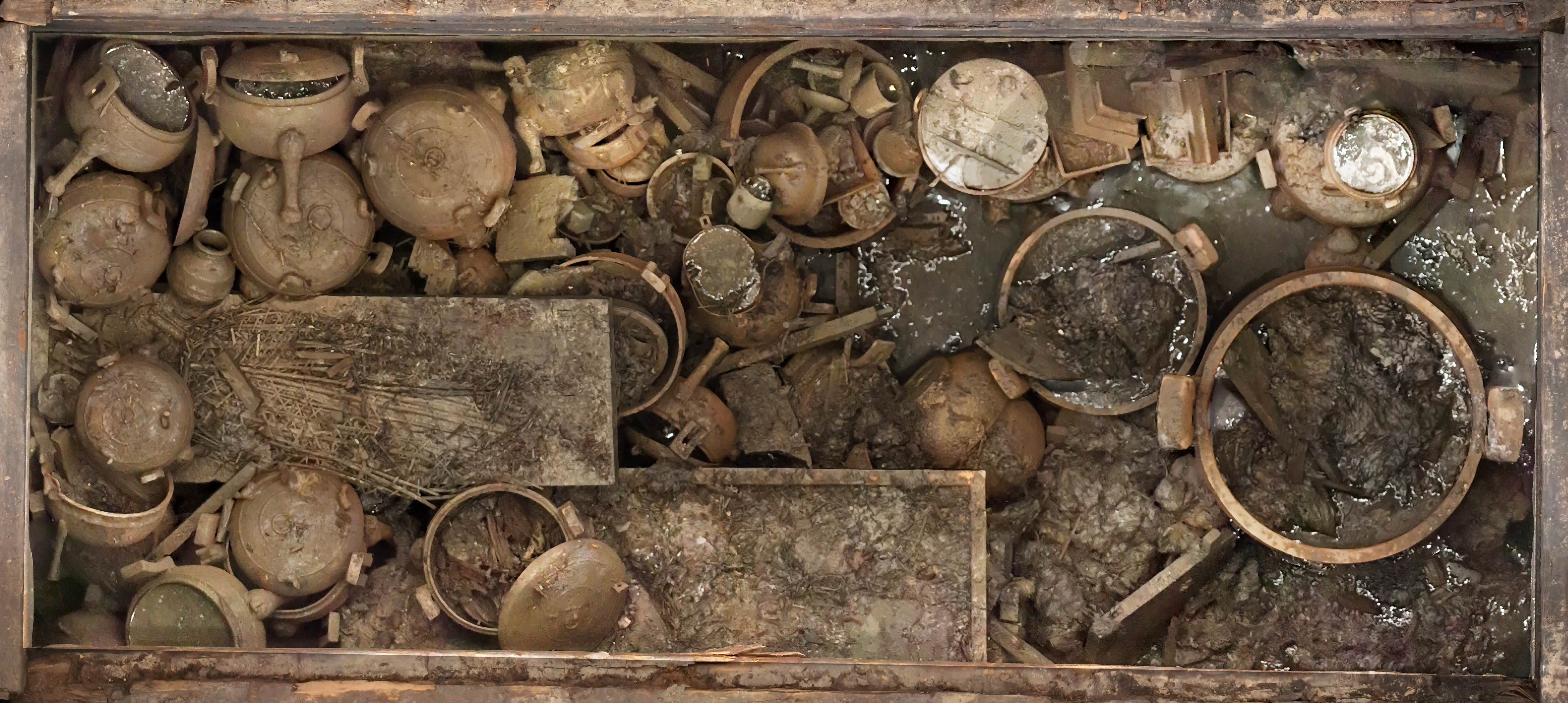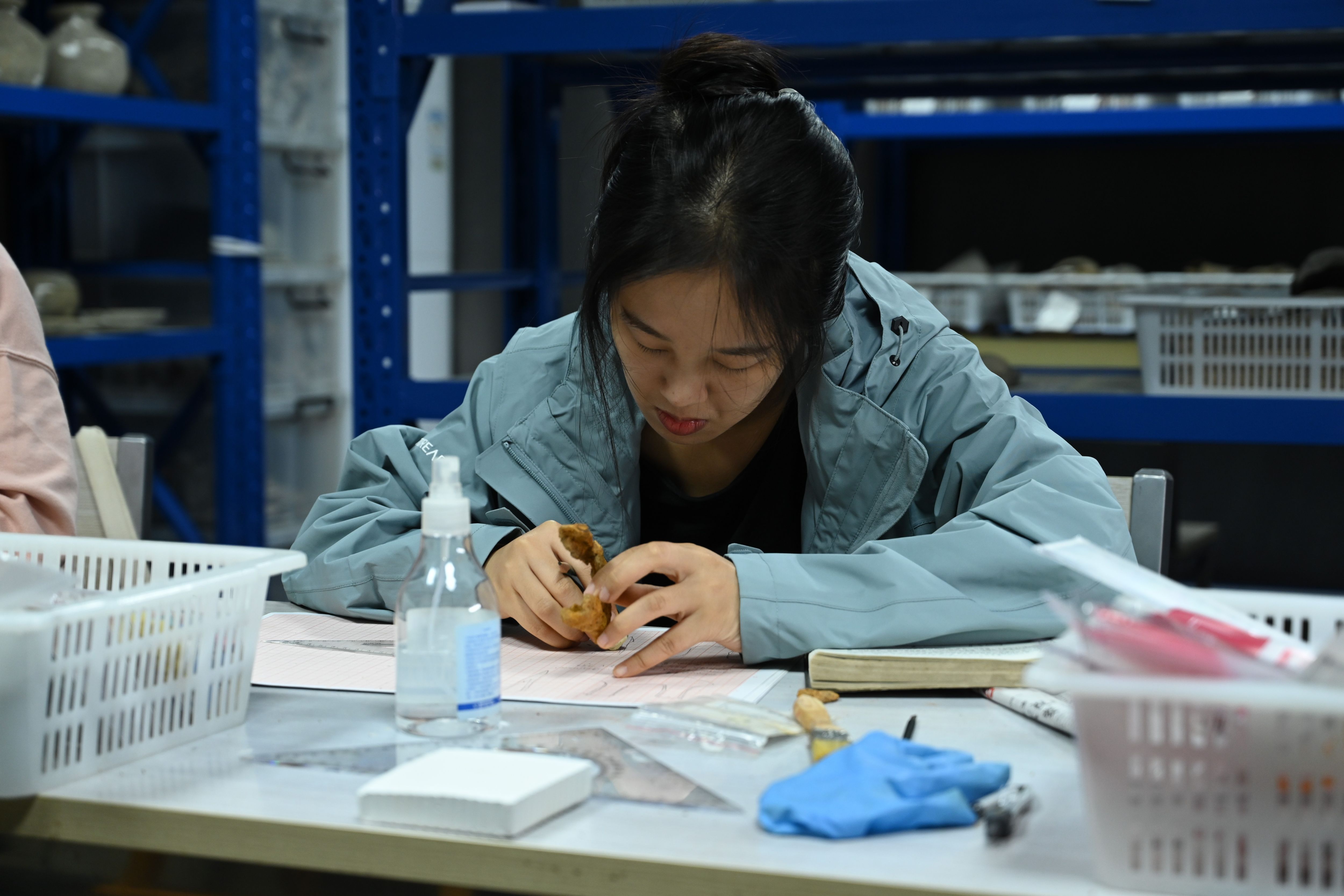 太阳成tyc122cc集团始终坚持服务文化强国战略,积极参与国家重大文化工程,在田野考古实践中做好人才培养和科学研究。四年多来,考古学院全程参与武王墩一号墓考古发掘,师生参与完成了武王墩墓葬封土和填土发掘,提取了椁室上铺设的竹席,拆解提取完全部椁盖板,现已进入椁室内部的发掘清理阶段。考古学院路国权教授任考古发掘二组组长,负责东室和北室发掘工作,坚持科学化、规范化、精细化发掘,在东1室发掘揭露出土大量青铜礼器、漆木器、竹笥、植物和果核等文物,其中南端放置的大鼎口径达88.3厘米,是已知体量最大的楚国青铜鼎。