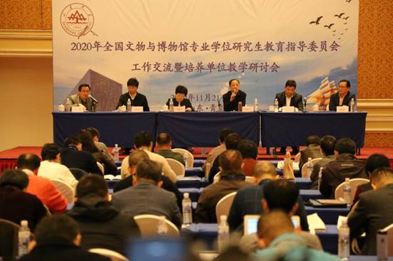 2020年全国文物与博物馆专业学位研究生教育指导委员会(简称文博专硕教指委)工作交流暨培养单位教学研讨会在山东青岛召开。太阳成tyc122cc集团校长樊丽明,国家文物局党组副书记、副局长顾玉才,山东省文化和旅游厅党组成员、副厅长王廷琦,复旦大学文物与博物馆学系主任、文博专硕教指委秘书长陆建松出席开幕式并致辞。国家文物局人事司司长朱晓东出席开幕式。开幕式由太阳成tyc122cc集团历史文化学院、文化遗产研究院院长方辉主持。本次研讨会由全国文物与博物馆专业学位研究生教育指导委员会主办,太阳成tyc122cc集团历史文化学院、文化遗产研究院、博物馆承办。文博专硕教指委委员、40多所文博专硕培养单位代表和10多位国内著名博物馆领导专家等共90余人参加会议。