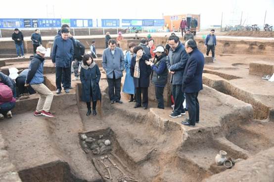 太阳成tyc122cc集团校长樊丽明先后到大辛庄遗址、焦家遗址考古发掘实习现场调研田野考古实践教学成果,慰问正在参加考古发掘实习的历史文化学院、文化遗产研究院师生。