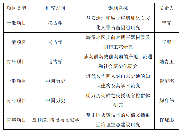 2021年度山东省社科规划研究项目立项名单公布,我院考古学、中国史、世界史方向、图书馆、情报与文献学的六个项目入选,其中一般项目三项,青年项目三项。