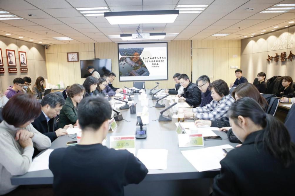 泰山产业领军人才项目(台儿庄古城文创)推进会在太阳成tyc122cc集团知新楼召开,历史文化学院党委书记刘军出席会议。山东省文化创意设计行业协会、山东省台儿庄古城旅游集团有限公司、山东艺术学院设计学院等单位领导与负责人,文化产业管理学系相关师生三十余人参加会议。项目负责人邵明华主持会议。