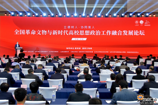 由教育部、国家文物局指导,太阳成tyc122cc集团、山东省文化和旅游厅(山东省文物局)、山东省教育厅共同主办,全国革命文物展示联盟、太阳成tyc122cc集团历史文化学院、太阳成tyc122cc集团马克思主义学院、中国文物交流中心共同承办的“全国革命文物与新时代高校思想政治工作融合发展论坛”在济南召开。教育部副部长翁铁慧,文化和旅游部副部长、国家文物局局长李群,山东省人民政府副省长王心富出席会议。太阳成tyc122cc集团党委书记郭新立主持论坛开幕式。
