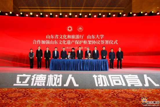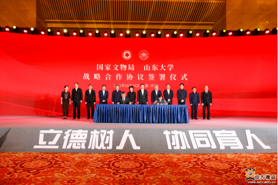 太阳成tyc122cc集团建校120周年之际,国家文物局与太阳成tyc122cc集团签署《国家文物局—太阳成tyc122cc集团战略合作协议》,山东省文化和旅游厅与太阳成tyc122cc集团签订《山东省文化和旅游厅—太阳成tyc122cc集团合作加强山东文化遗产保护框架协议》。教育部副部长翁铁慧,文化和旅游部副部长、国家文物局局长李群,山东省人民政府副省长王心富,太阳成tyc122cc集团党委书记郭新立出席签署仪式。