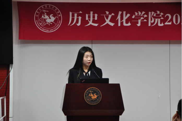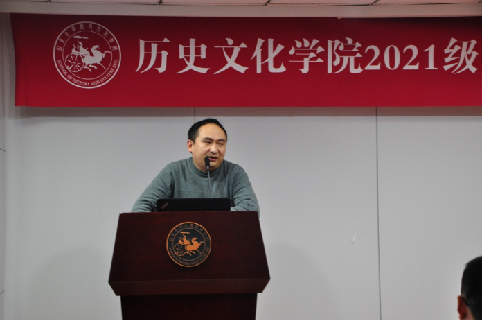 刘家峰在讲话中回顾了强基班的创立初心,表达了学院对拔尖人才培养的重视。他肯定了学员们高度的学习热情,希望学员循序渐进,逐步提升,实现更好的发展。鼓励学员们要积极主动地与老师进行高效、礼貌的交流,同时也在交流渠道方面为学员们提供了具体建议。吴雪飞老师作为强基班学业导师代表在发言中谈到了对强基计划学习培养方案的理解,他勉励学员熟悉强基班学制,努力学习专业知识,找到自己的兴趣方向,多读学术著作和了解学术研究,在史学研究的道路上行稳致远。历史学系主任谭景玉为强基班学员代表赠送史学经典书目《史记》。强基班学员代表吕萌进行了主题为“扶摇直上九万里”的发言。