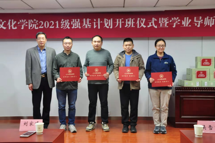 为推进强基计划人才培育,学院聘任了一批博学有为、年富力强的青年学者来担任强基班学业导师,引领强基班学员进行更具方向性与专业化的学习,刘家峰为学业导师代表颁发聘书。