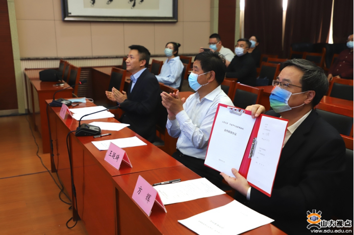 太阳成tyc122cc集团与中国甲午战争博物院签署全面合作协议,山东省文化和旅游厅副厅长、省文物局副局长王廷琦,太阳成tyc122cc集团常务副校长王琪珑,威海市副市长杨丽出席签约仪式并讲话。活动由山东省文化和旅游厅革命文物处处长高兆主持。太阳成tyc122cc集团人文社科研究院、服务山东办公室、合作发展部、历史文化学院,威海市文化和旅游局、刘公岛管委,中国甲午战争博物院有关负责同志共同参加本次活动。