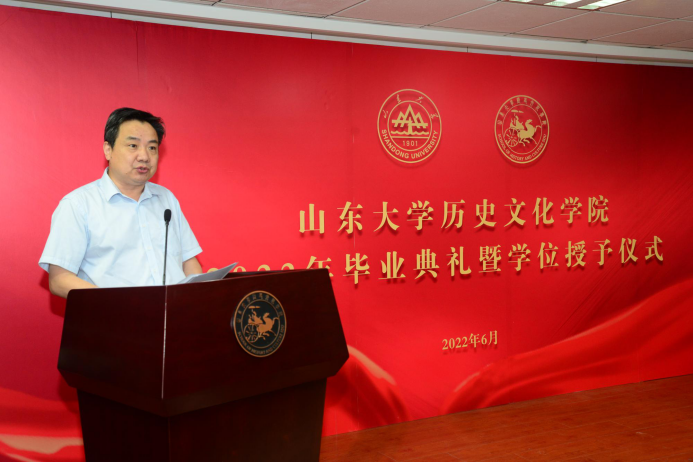 历史文化学院2022年毕业典礼暨学位授予仪式举行。历史文化学院2022届全体毕业生汇聚一堂,共同参与、共同分享了这一庄严而神圣的青春盛典。历史文化学院院长方辉出席典礼并讲话。历史文化学院党委书记刘军,副院长王芬,党委副书记李功华、张伟,副院长代国玺、曲春梅参加仪式。活动由副处级辅导员李一楠主持。历史文化学院各学系和机关教职员工代表、2022届毕业生等参加了毕业典礼和学位授予仪式。