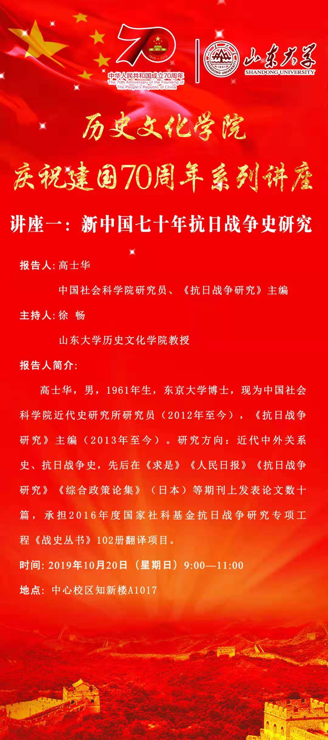 通知 | “新中国七十年抗日战争史研究”讲座取消