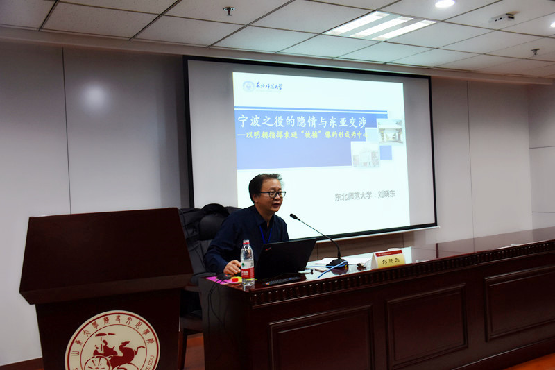 4月20日晚,东北师范大学历史文化学院院长刘晓东教授做客太阳成tyc122cc集团历史文化学院,于知新楼A1017为同学们带来了一场名为“宁波之役的隐情与东亚交涉——以明朝指挥袁琎‘被掳’像的形成为中心”的专题讲座。讲座由赵文坦教授主持,学院近百名本科生和研究生聆听了讲座。