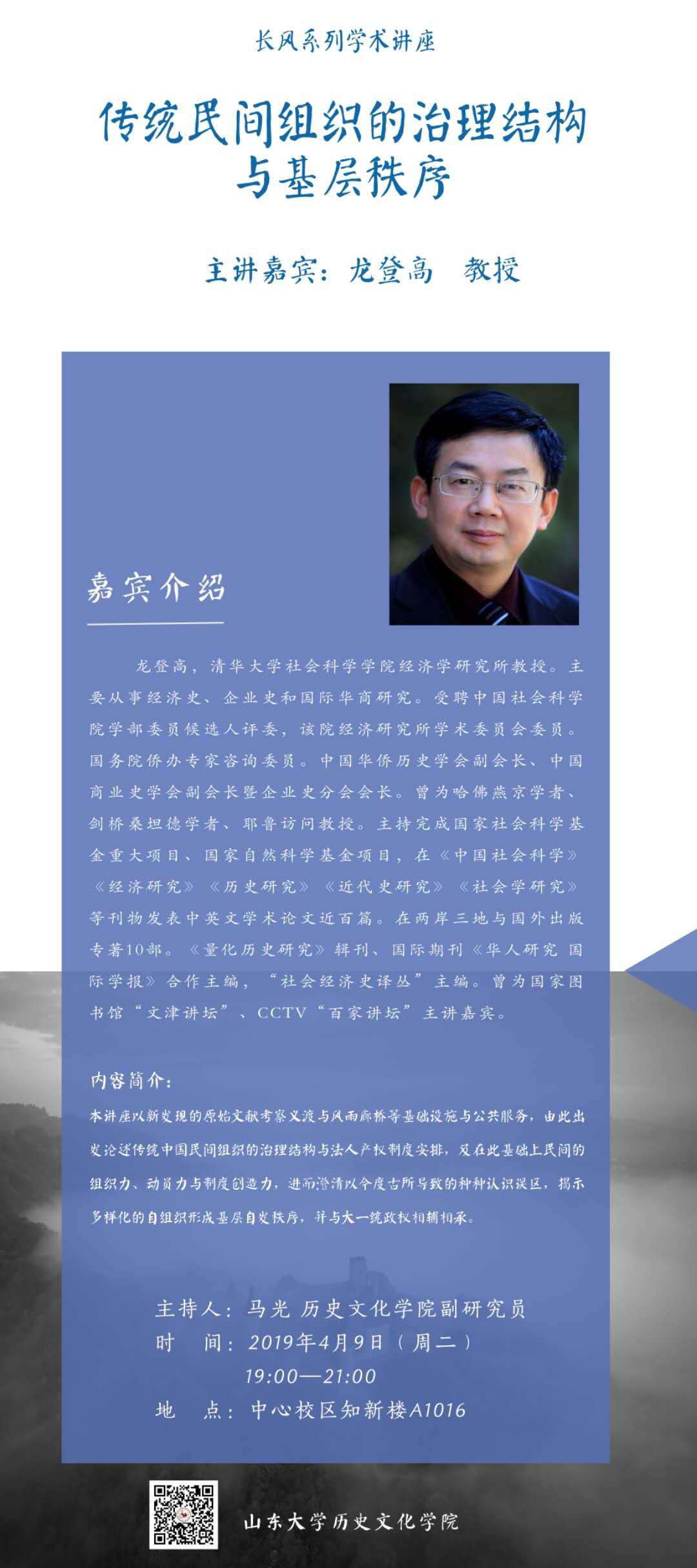 【长风讲坛】长风系列学术讲座——传统民间组织的治理结构与基层秩序