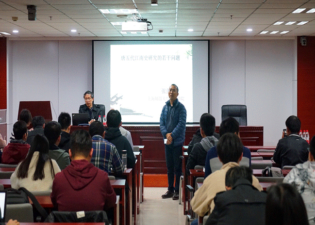在互动讨论环节,同学们就感兴趣的问题积极向张教授请教,张教授一一作出了详尽解答。王建峰老师表示,张教授的讲座涉及到历史地理、社会史、经济史等多个领域,内容丰富而精彩。两位老师还就“江南”概念的变化原因进行了探讨。