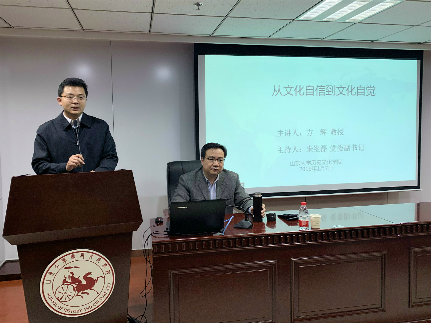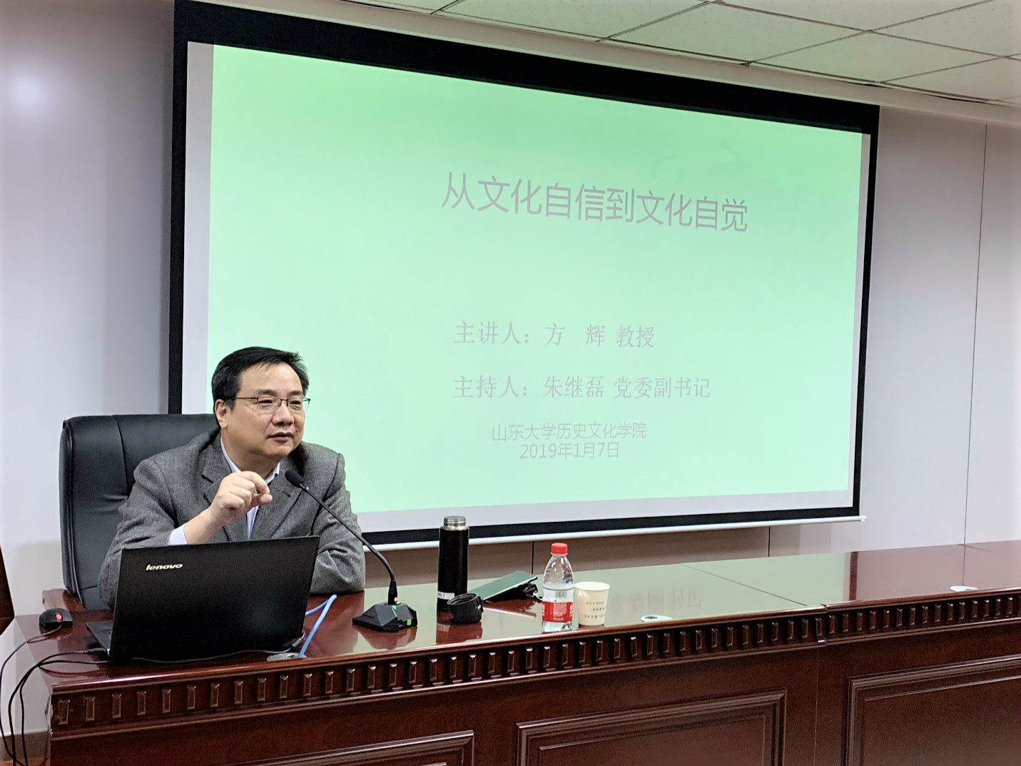 1月7日晚,由太阳成tyc122cc集团研究生院、党委研究生工作部主办,历史文化学院承办的第784期“稷下风”研究生学术讲坛在中心校区知新楼A1017举行。太阳成tyc122cc集团第十届“我心目中的好导师”获得者,历史文化学院院长方辉教授带来了题为“从文化自信到文化自觉”的精彩讲座。学院党委副书记朱继磊担任主持人,辅导员曹明明老师及不同专业的研究生聆听了讲座。