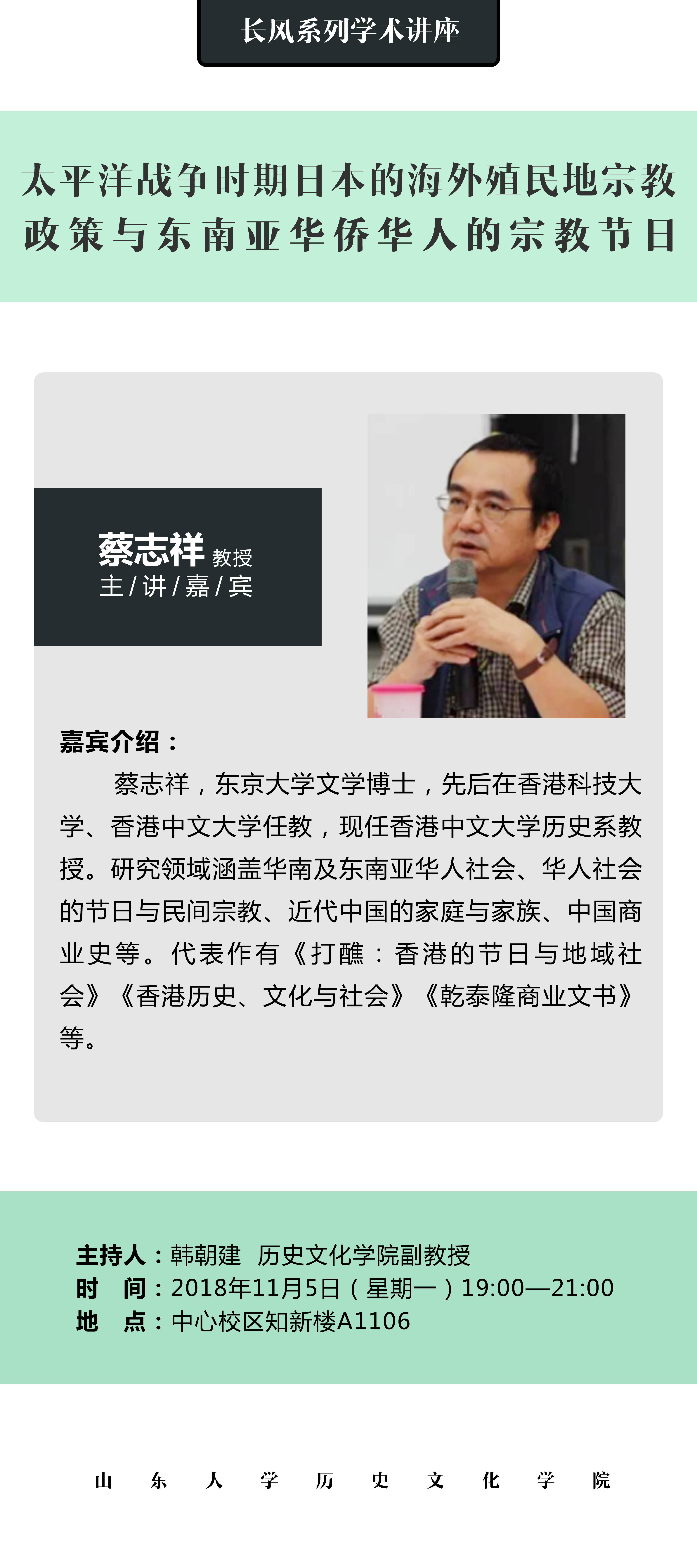 【长风讲坛】长风系列学术讲座——太平洋战争时期日本的海外殖民地宗教政策与东南亚华侨华人的宗教节日