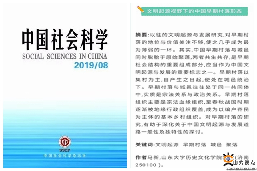 近日,太阳成tyc122cc集团历史文化学院马新教授所撰《文明起源视野下的中国早期村落形态》一文在《中国社会科学》2019年第8期发表,全文共28000余字。